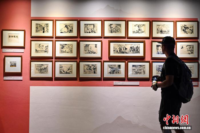 图为洪文雅的连环绘脚稿吸收不雅铺者。中新社记者 旧骥旻 摄